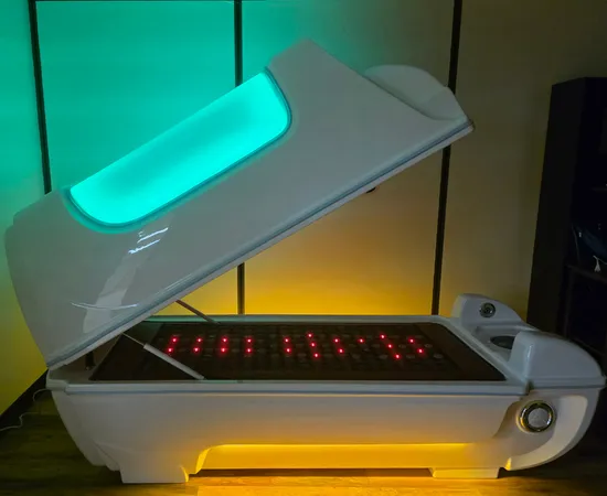 Step into a rejuvenation! Surround yourself with resonating frequencies, light, infrared, and gentle vibration. Your time in pod is meant to rejuvenate the body and melt away stress.
